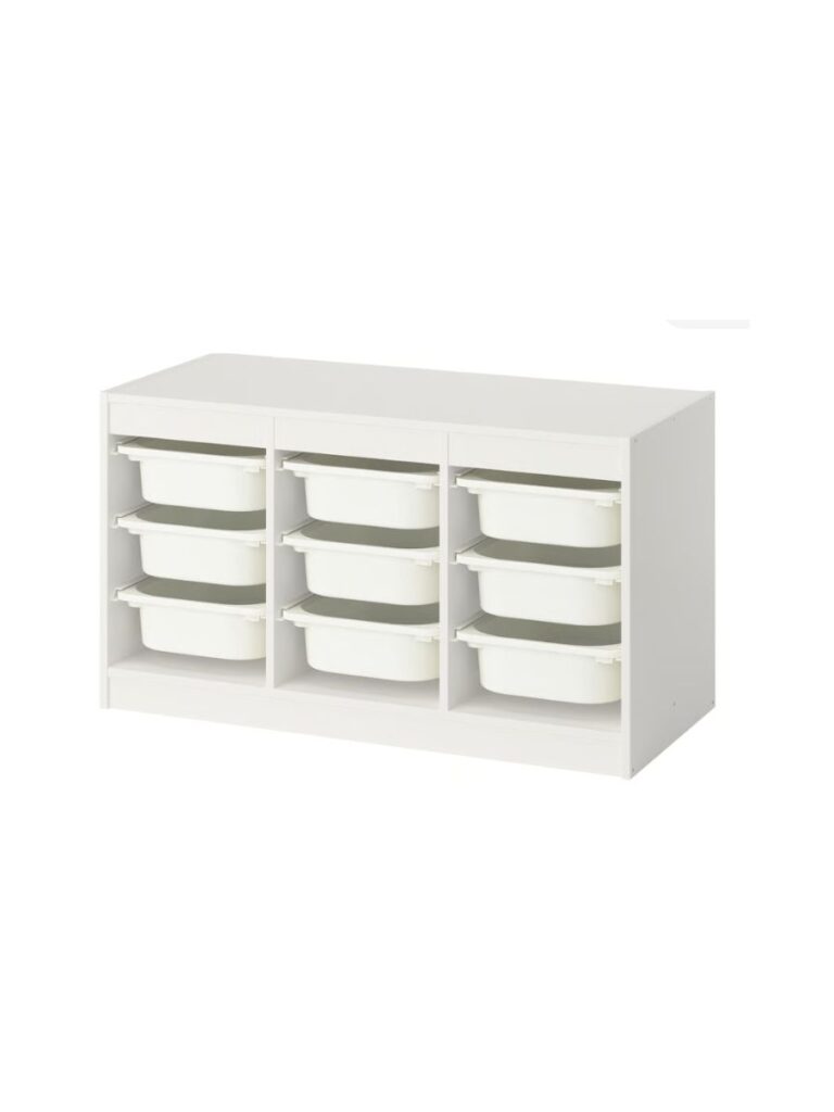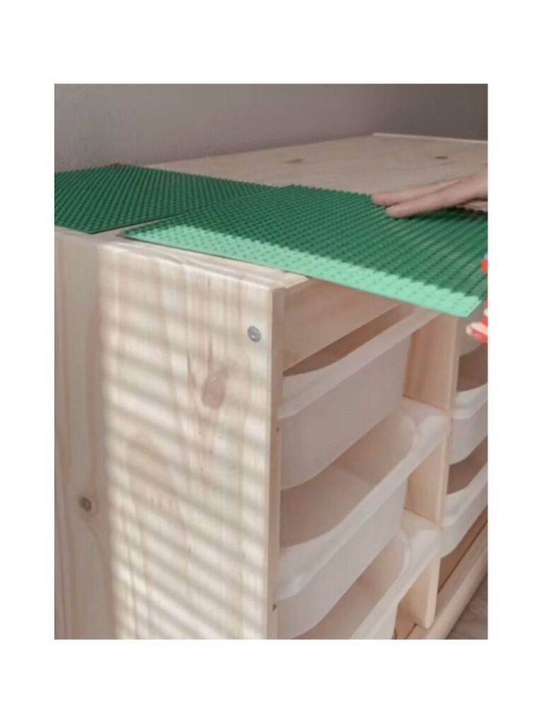 We suggest using clear bins and simple shelves to store toys, making everything easy to find.